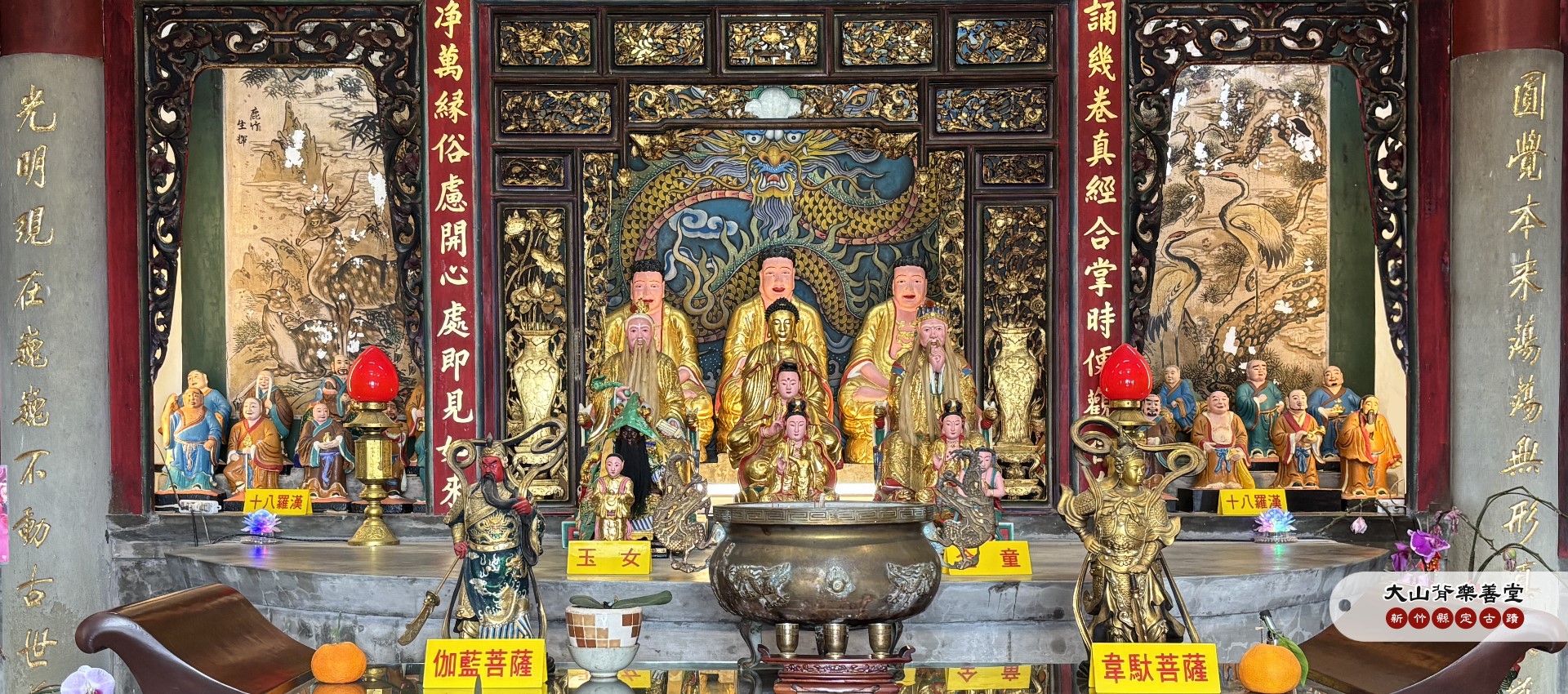 快捷選單 主祀神明 信眾服務 活動花絮 大山背聽旅行 最新消息 08 2025.11 農曆九月十九日觀世音菩薩聖誕。 21 2025.10 新竹縣創全國先例推動宗教場所ESG評鑑,樂善堂評鑑甲等獎 22 2025.09 中元慶典活動花絮 30 2025.08 梁皇寶懺消災解及超拔普渡法會,歡迎各位信士大德報名參加。 13 2025.07 農曆六月十九日觀世音菩薩聖誕。 27 2025.05 農曆每月初一、十五上午八點恭請佛門居士奏法會課誦經文 22 2025.05 114年8/30、31~9/1日 ( 三天 ) 舉辦慶贊中元、梁皇寶懺、消災祈福、贊普、超度薦拔法會。 01 2025.05 介紹大山背樂善堂-資料來源國家文化資產網 16 2025.02 農曆正月十九日上午八點起,植福禳燈、起斗、點光明燈、安太歲、制化煞、祈奏法會課誦經文 MORE 活動花絮 贊普捐贈 熱情志工團隊 2025 中元慶典活動 守護橫山百年信仰中心縣定古蹟大山背樂善堂防災演練、教育推廣 MORE 關於我們 樂善堂是一座佛教廟宇,主祀釋迦牟尼佛、文殊菩薩、普賢菩薩,由於是地方之廟宇,亦有民間信仰之色彩,堂內保存眾多古文物,頗具歷史意義與特色,於民國九十五年公告為縣定古蹟。 樂善堂建築之特色在於牆面由石板所砌築,由於橫山油羅溪谷內產砂岩,因此,建廟時以砂岩做為牆壁材料,為本堂特殊之處。堂內三開間均做為祭祀空間,內部簡潔,無華麗裝飾,左右牆上書「忠孝廉節」,是出自書法名家劉家驥手筆。堂內佛像渾圓可愛,頗具特色。樂善堂正後方有一古井,井後祀「福德龍神香位」,為客家建築特色。 MORE