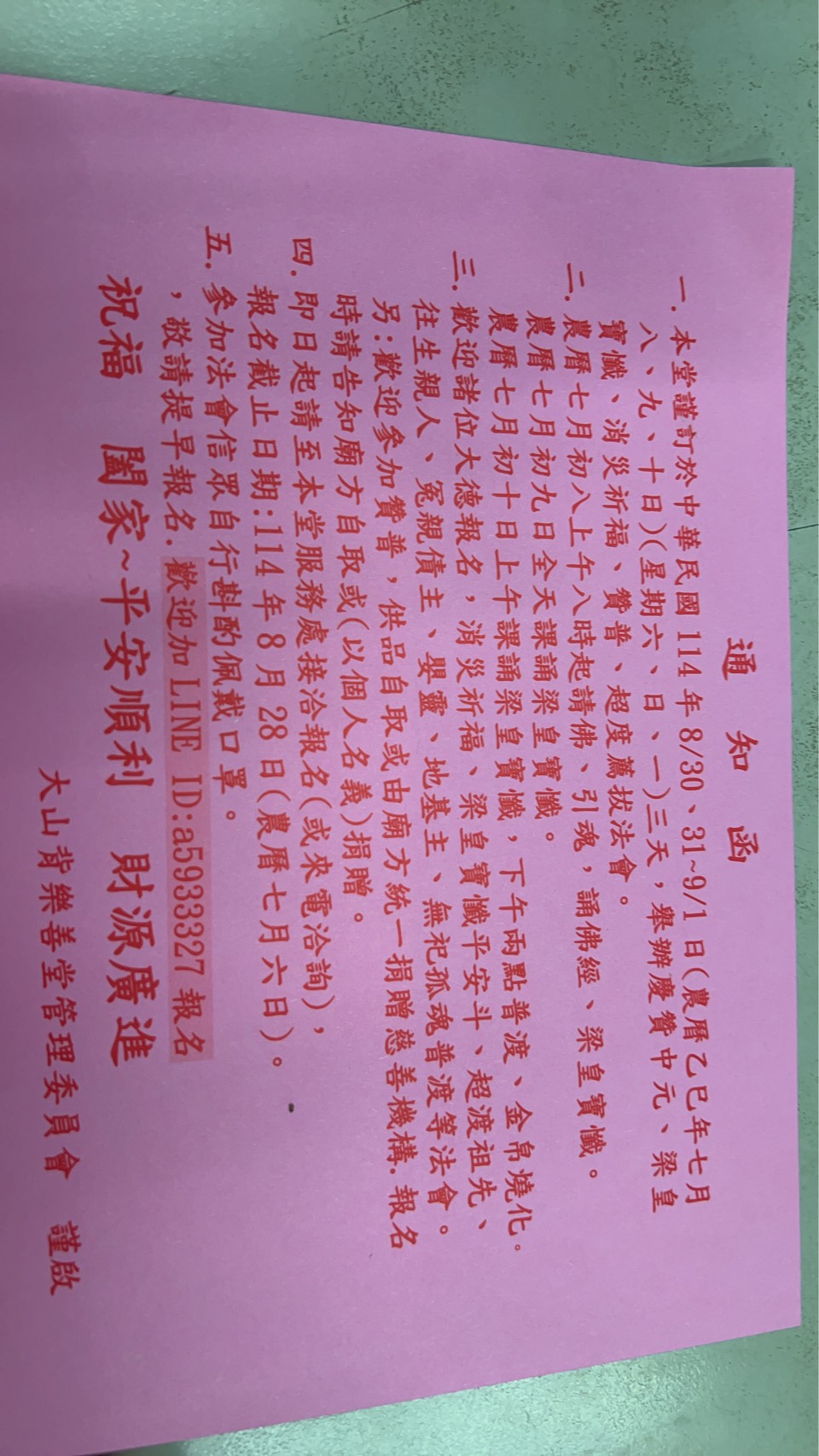 • 即日起請至本堂服務處接洽報名 ( 或來電洽詢 ) 報名截止日期:114年8月28日 ( 農曆七月六日 ) 。